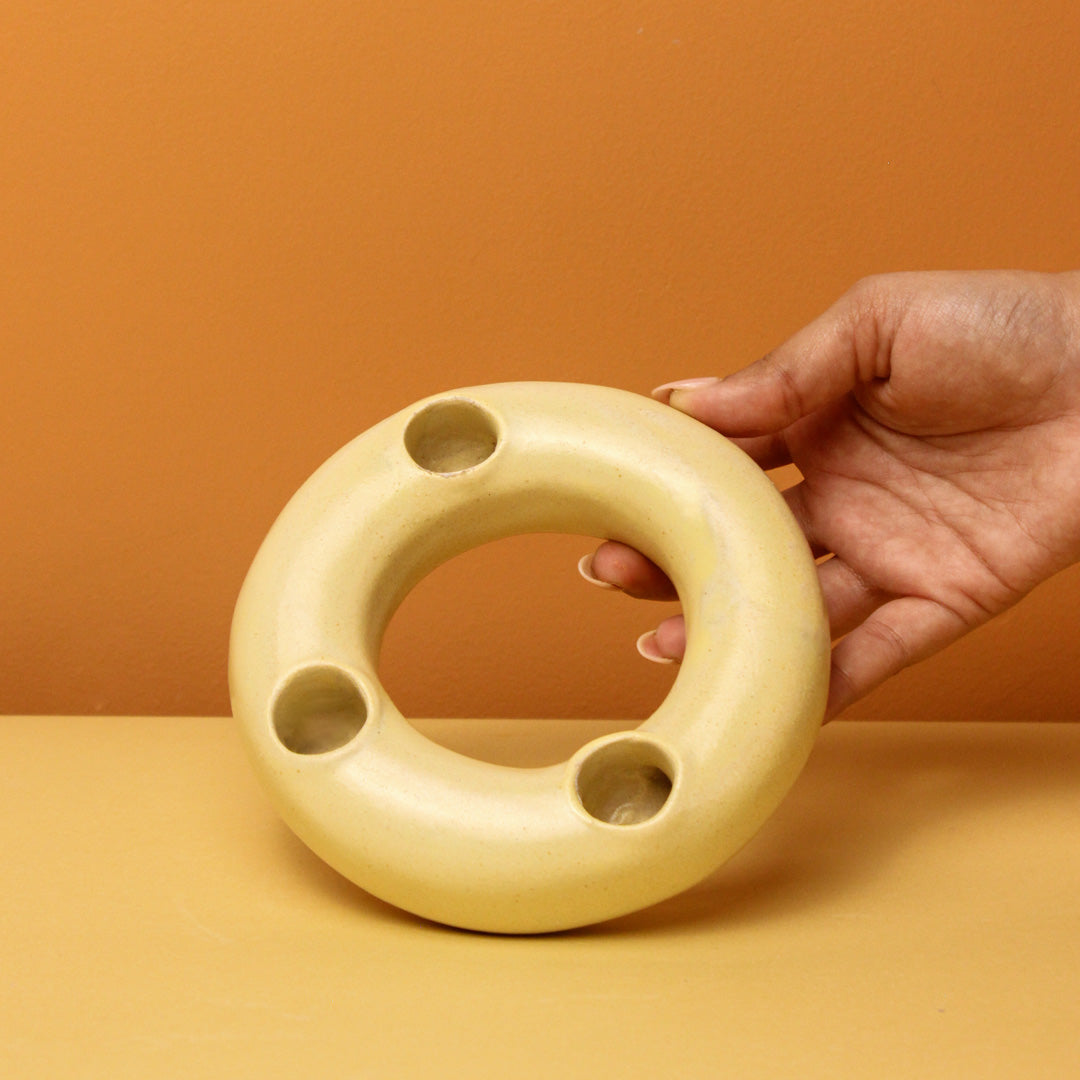 Ceramic Donut Candle Holder - Beige