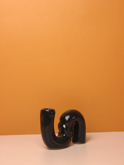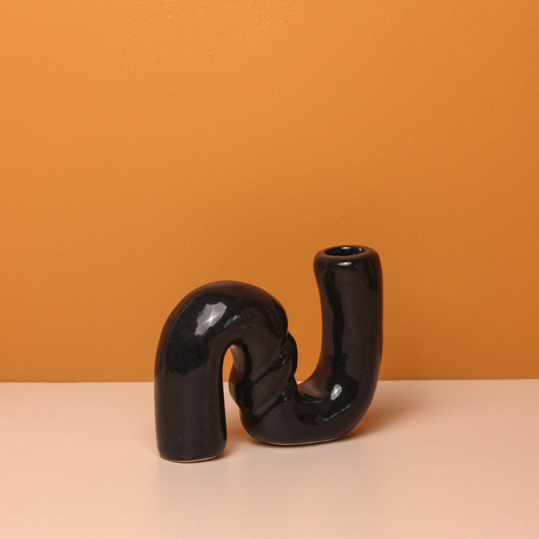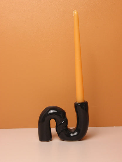 Desert Waves Ceramic Candle Holder - Black
