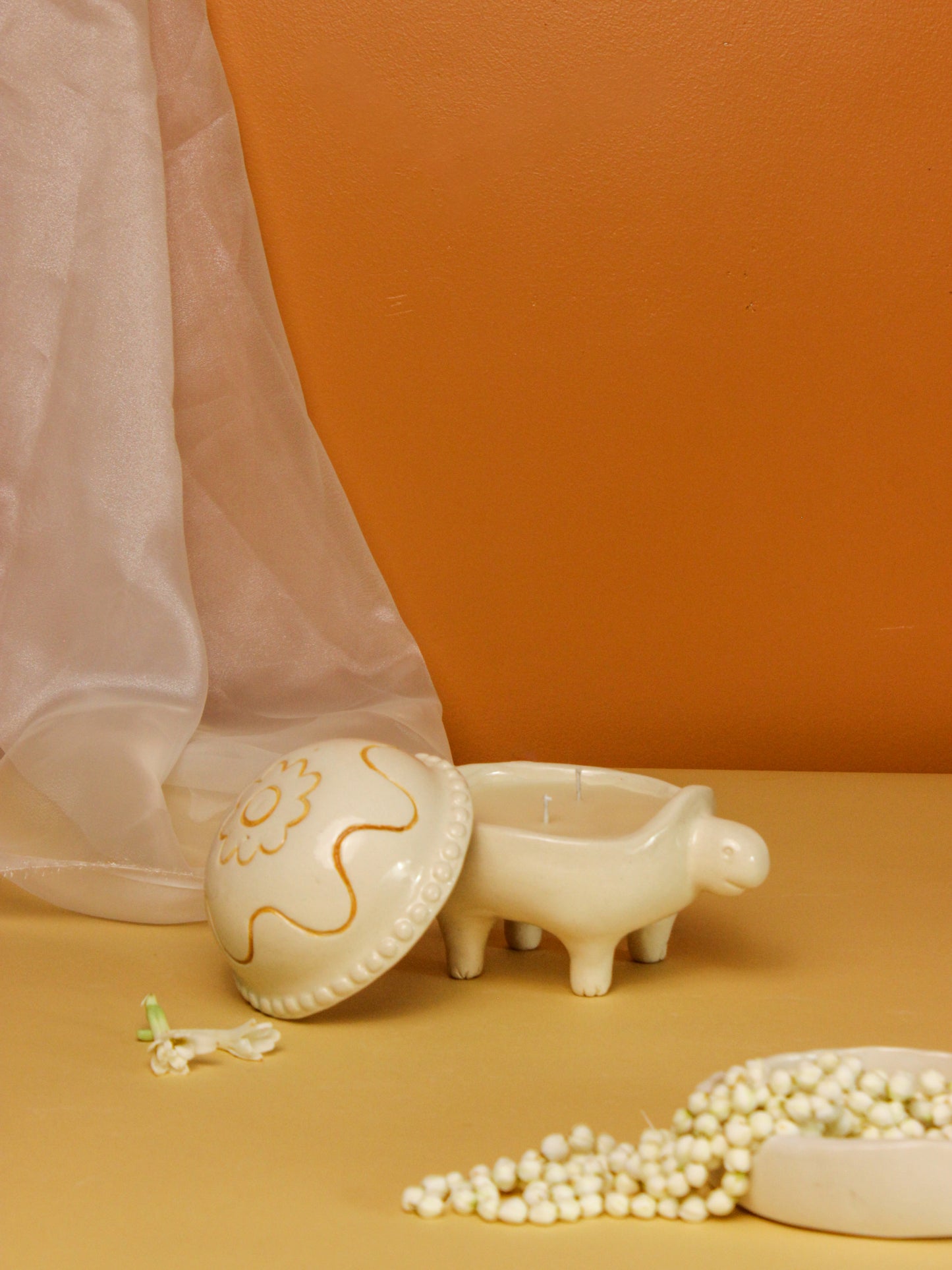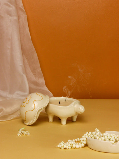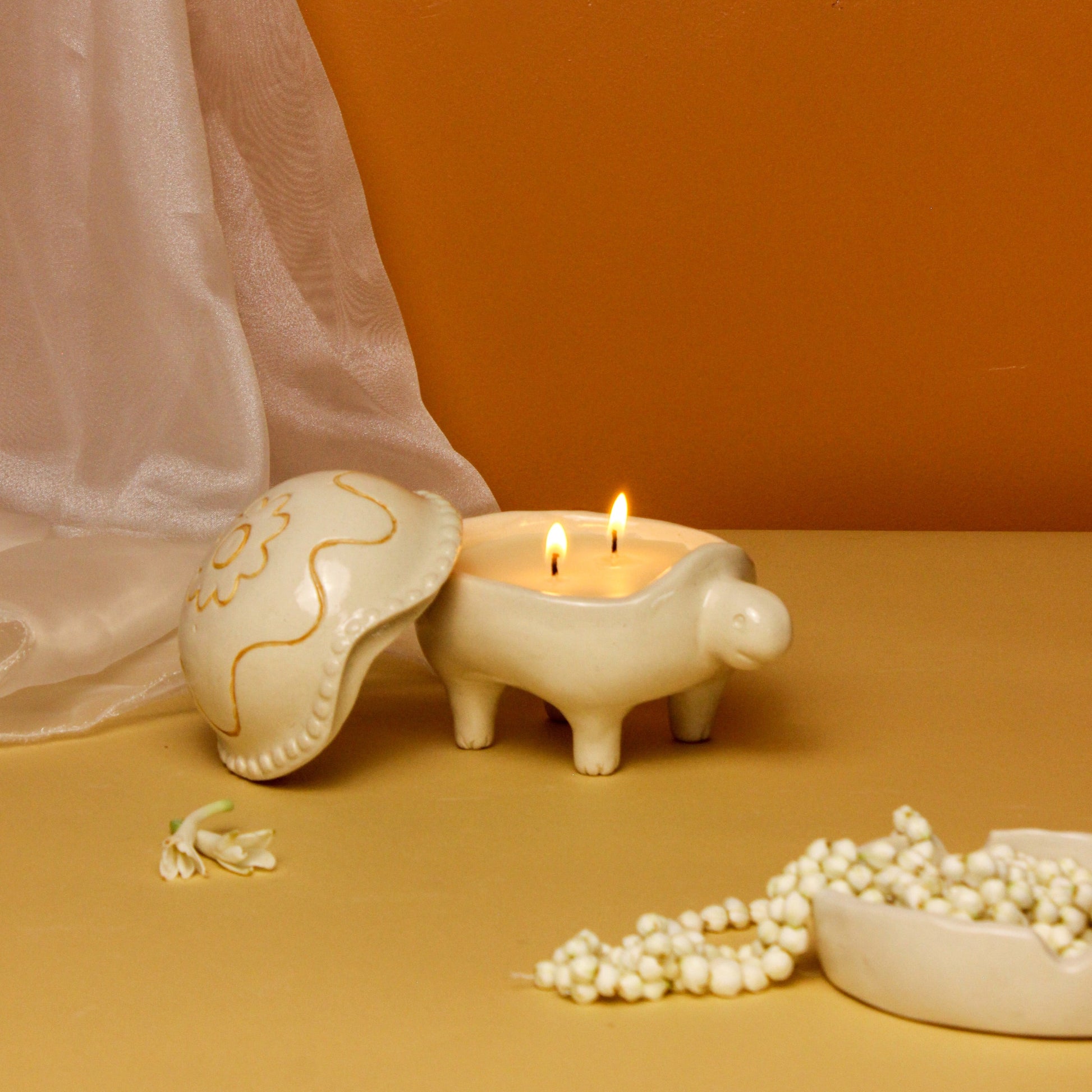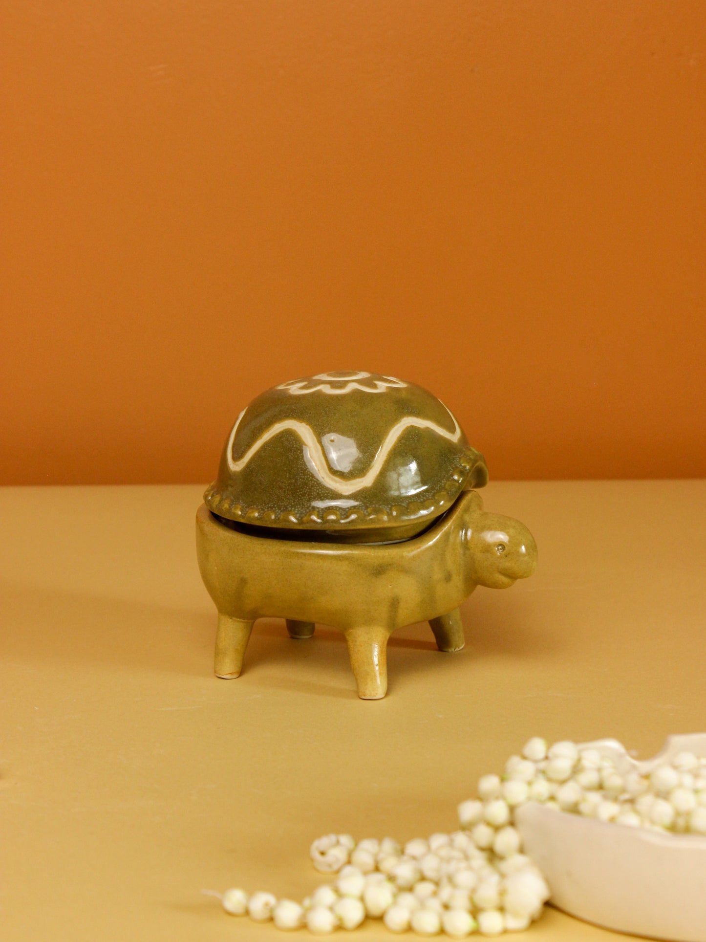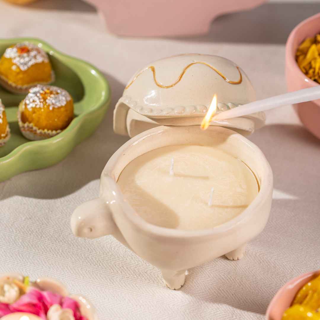 Inducing nature-inspired forms and shapes into your décor, this turtle-shaped candle holder adds whimsical magic to Diwali decoration. An adorable statement to enhance your celebration, this pristine candle is handcrafted to illuminate your space with a magical vibe. Casting a mesmerizing glow, this uniquely designed piece acts as an exquisite accent piece. Boost the festive ambiance with a playful vibe. Reimagining traditions in a brand-new way, this piece exudes an urban-chic aura!