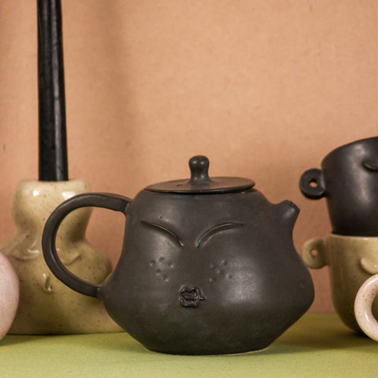 The Sage Face Black Ceramic Tea-Pot Set with 4 Cups