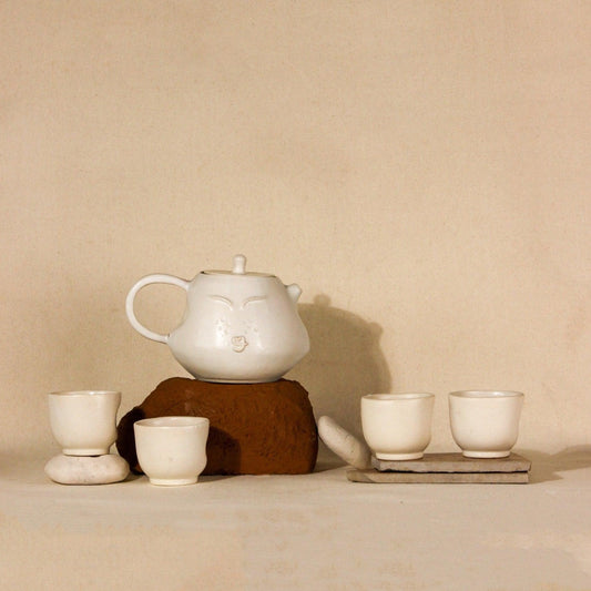 The Sage Face White Ceramic Teapot Set with 4 Cups