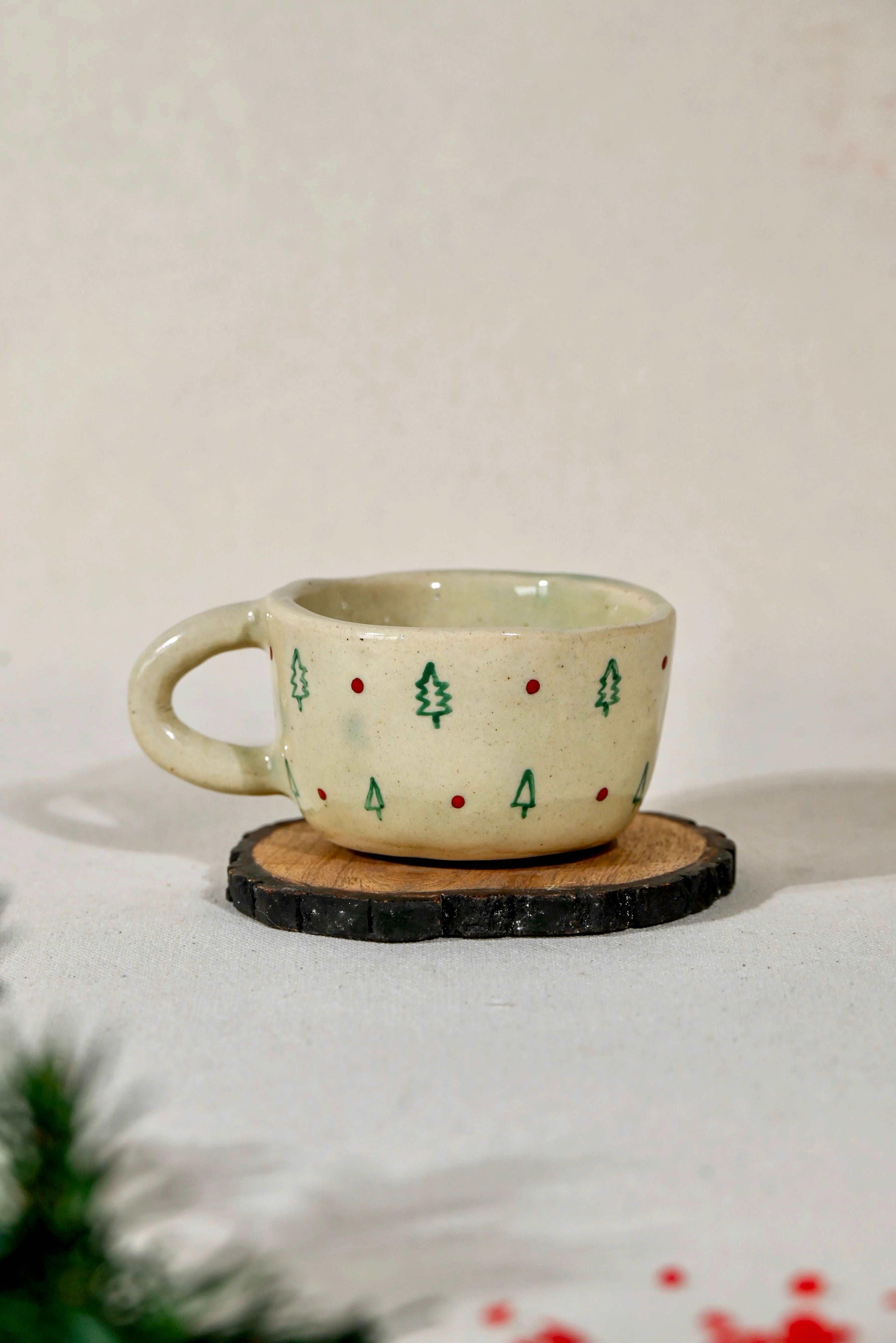 Life is too short to drink from your regular mug, especially on Christmas. The Christmas Tree has jumped from your living room onto your favourite cup. The Orby House promises to bring merry art and festive cheer to every part of your life, even in your morning/evening sips. Add a touch of aesthetic magic to make each basic day, extraordinary. Curl up this winter and savour a cup of hot chocolate/chai latte, in our exclusive Christmas Tree Cup, with the cutest little tree details. The surface of the eclectic ceramic cup is deliberately uneven, made with a hand-pinching technique & then hand-painted. Completely handmade by local artists, the materials and hand-building technique, makes each piece unique and different from the other. Tool marks and small imperfections are part of the handmade process. Created with non-toxic clay and glazed to a shine, the cups are microwave, oven, and dishwasher safe. Every piece has its own individual shape, personality, and irregularities. All dimensions are as accurate as possible. However, as with any hand-built item, there could be some variations in size between pieces.