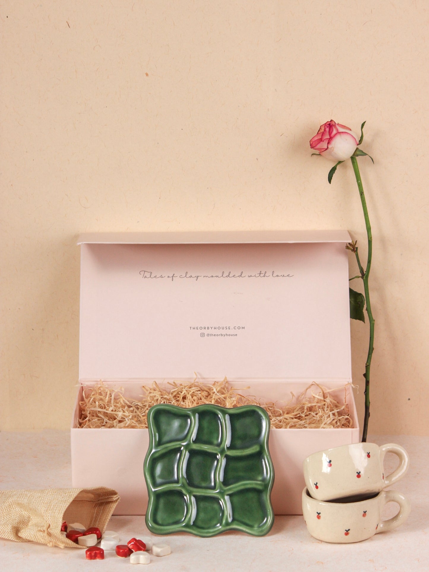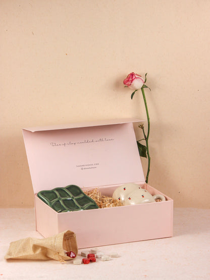 The Day of Love is all about sharing some good times and happy memories. What can be more loving and nostalgic than a game of Tic-Tac-Toe with the most adorable details on ceramic? Game-time over a cup of coffee/tea will help you connect with your loved ones, as you share conversations. So, gift this thoughtfully-crafted hamper that ticks all the boxes and is sculpted by hand. Let’s raise a toast to love and promise on spending quality time with TOH’s mindfully-curated Valentine’s hamper.