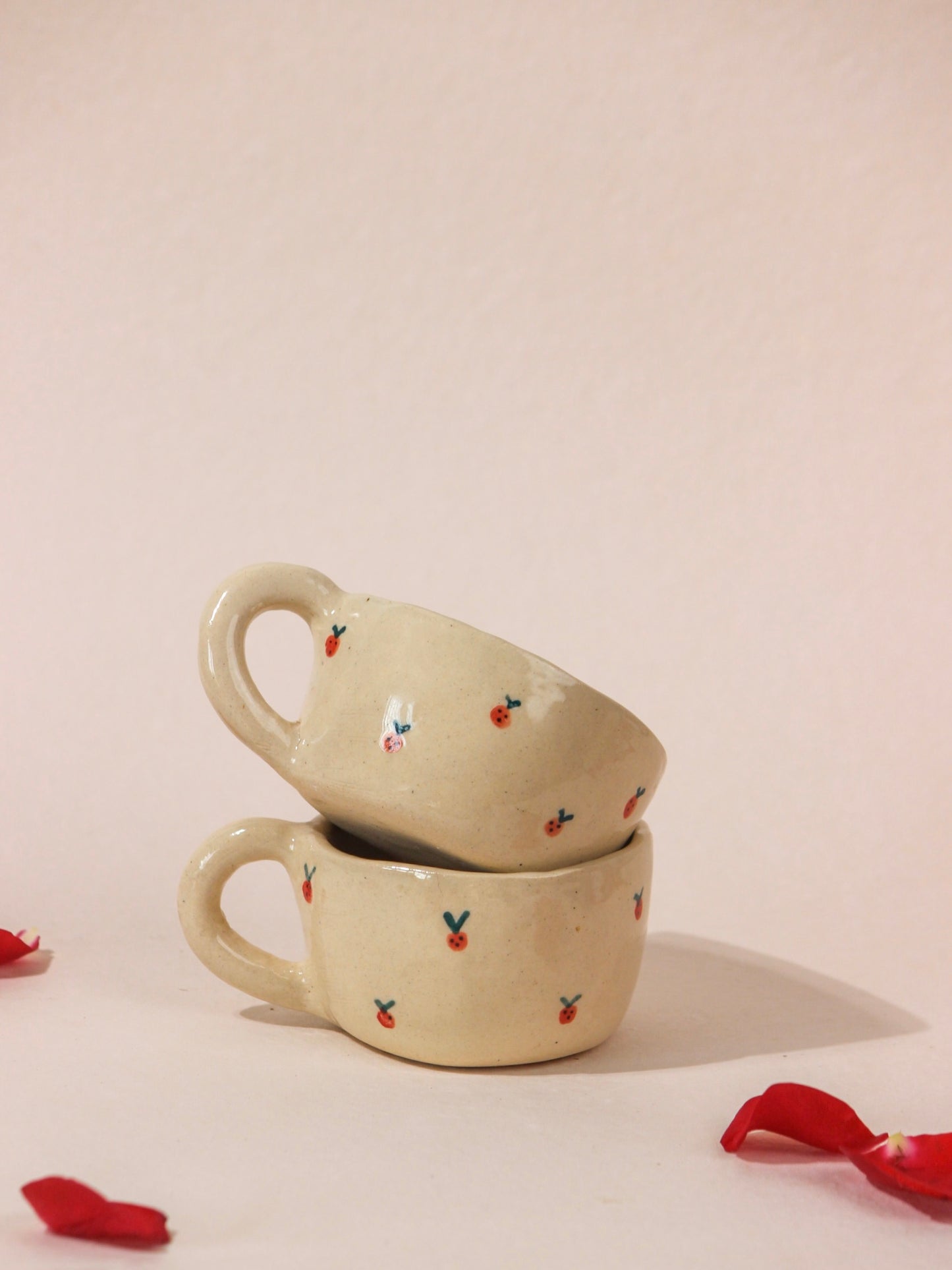 1. A set of two mugs with the cutest hand-painted peach illustrations