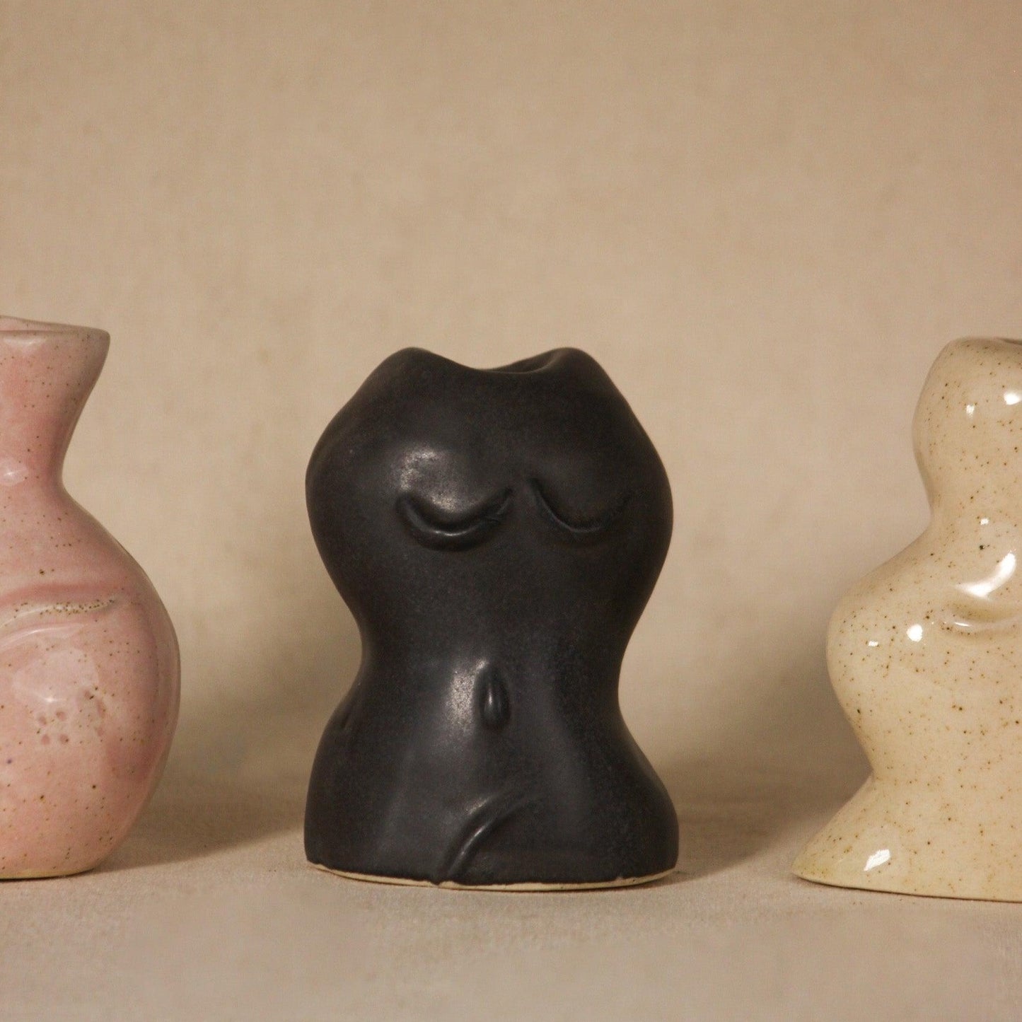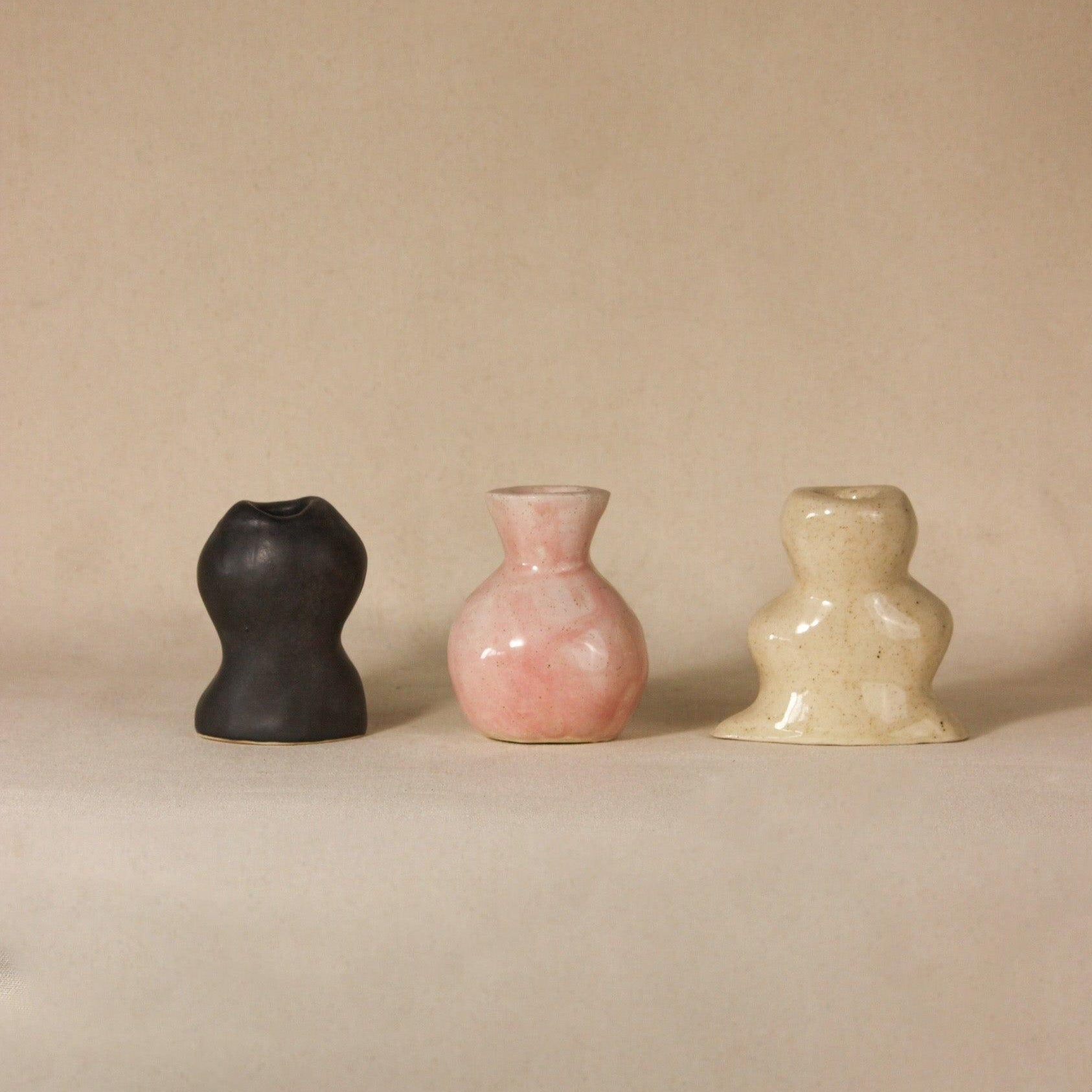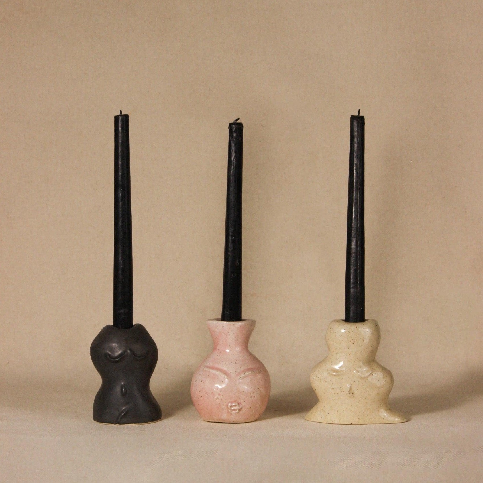 Soulful Ceramic Face Candle Holder Set of 3 (Black / Pink/ Beige)