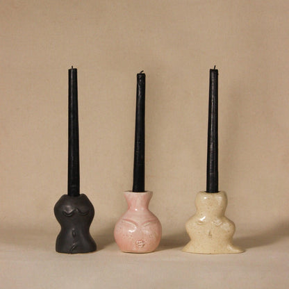 This quirky candle holder Set of 3 in Black, Pink and Beige colours - features soulful faces designed to provide your interior space fresh and blissful feeling. Crafted to infuse ambiance, these unique holders exude character and elegance. Elevate your decor and create a soothing atmosphere with this exquisite set.