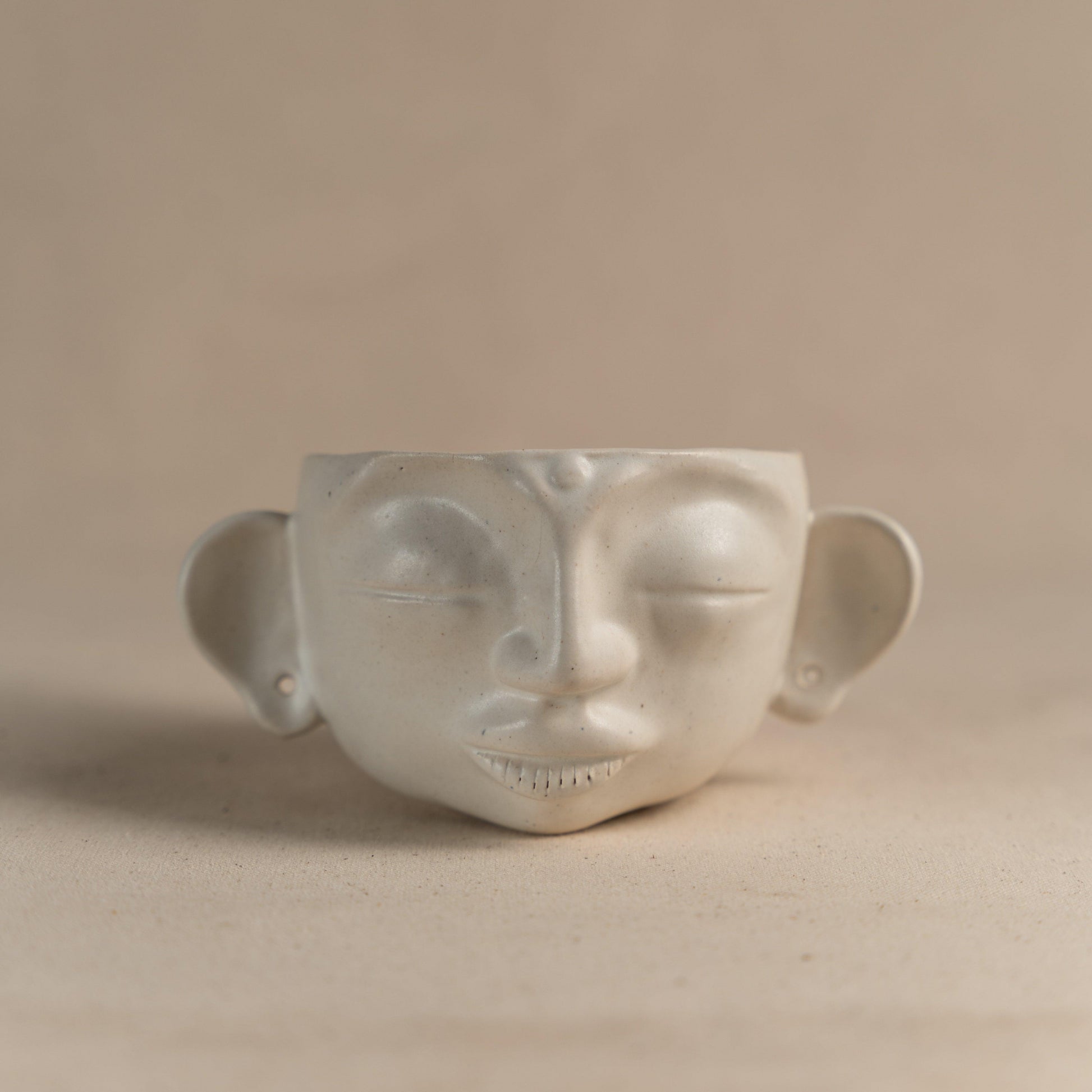 A hand-thrown, stoneware planter with hand-sculpted details and a matt white finish. Small and sweet, this planter makes the perfect home for a little fern or succulent. Add it to any space to add character and style.
