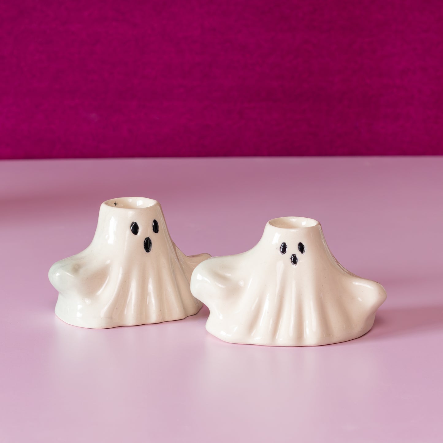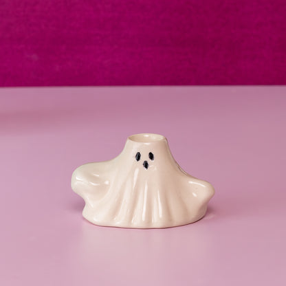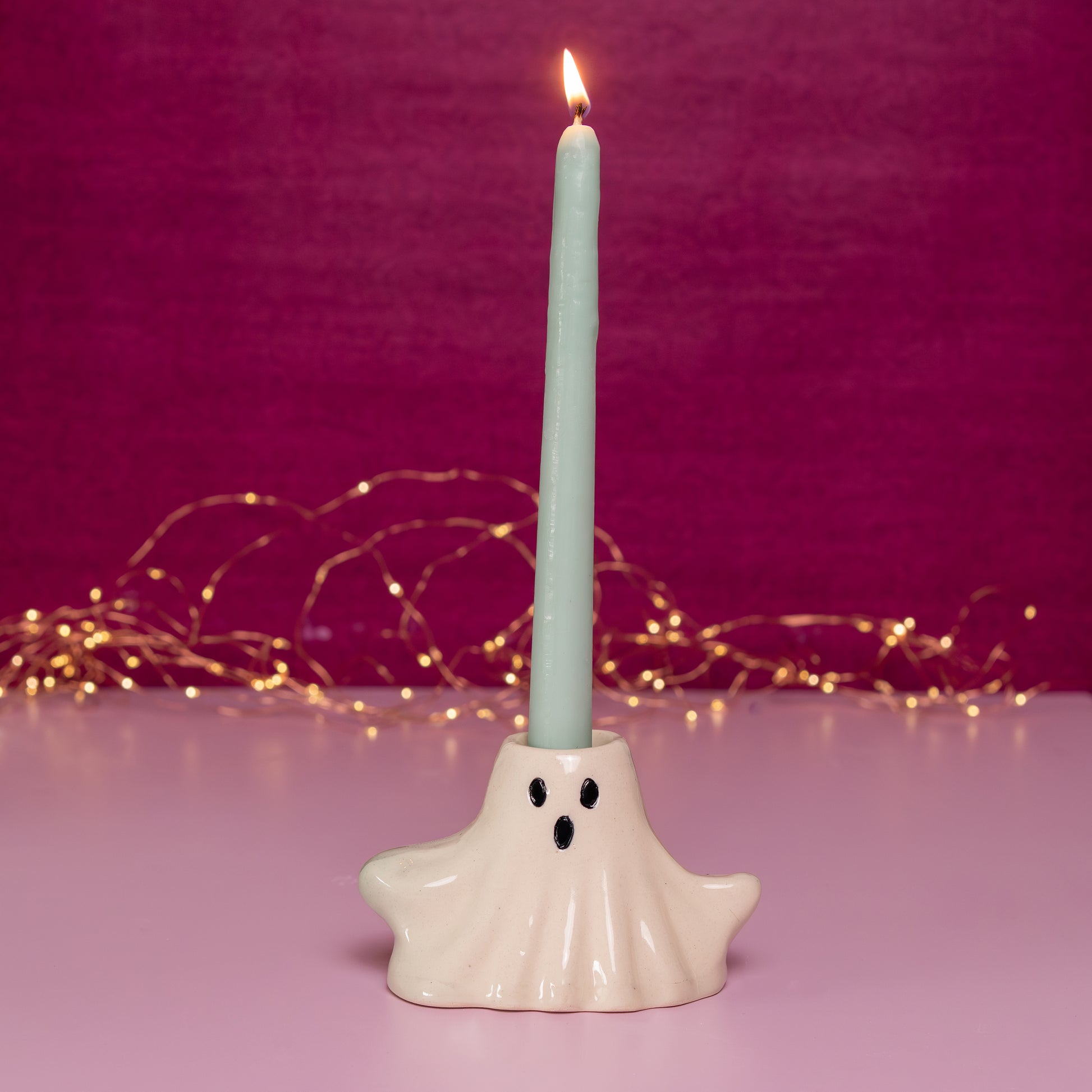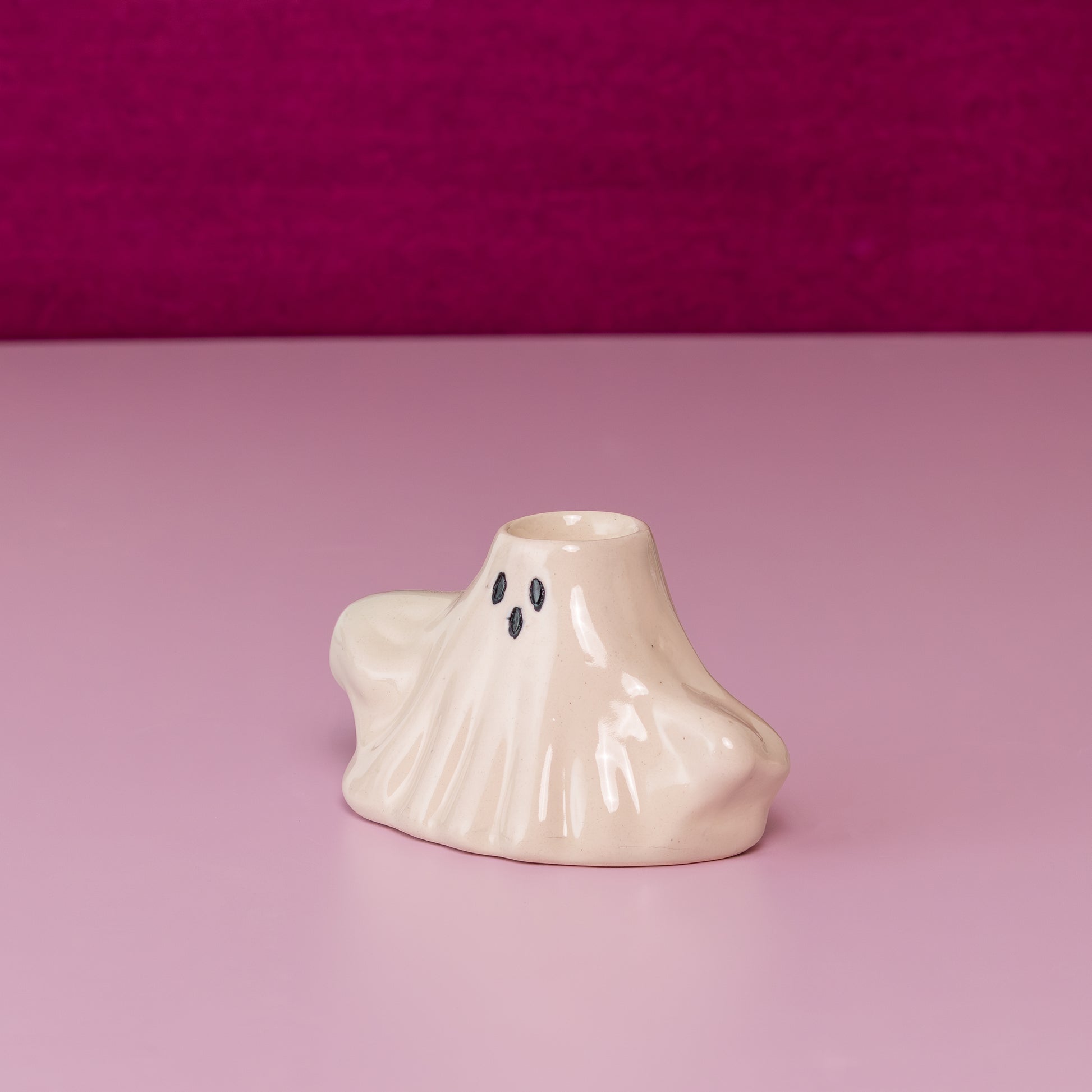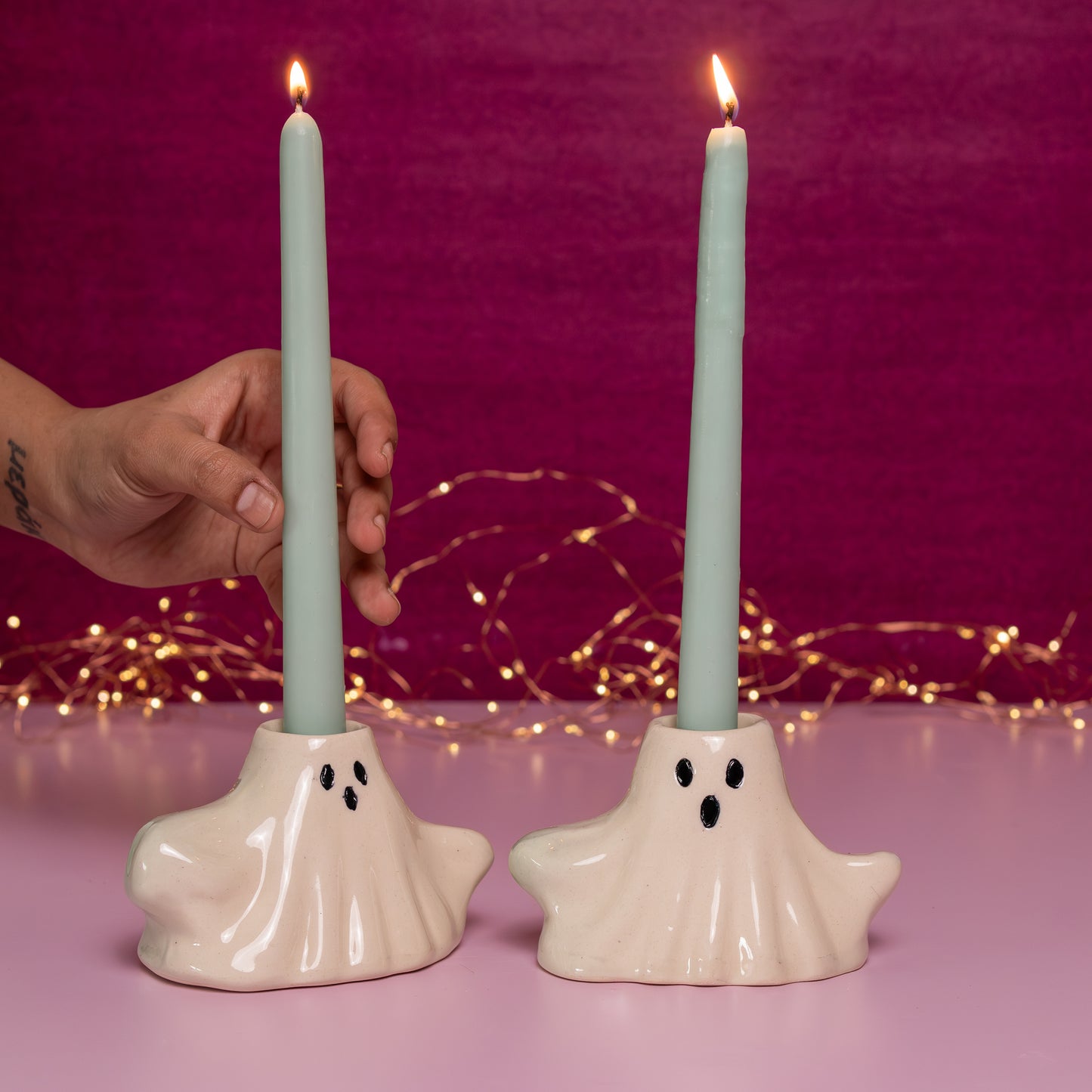 A touch of whimsy to your Halloween decor - let our candle holder steal the show with a surprising 'boo!' Finely crafted by our artisans, these adorable pieces cast a spooky glow to October nights, making them all the more magical. The cute detailing comes alive further when a tea-light candle is placed in it. Light up any corner of your space or gift it to a friend for a delightful addition to their space.